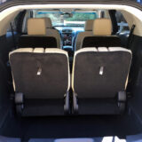After my brief cruise in the latest family swagger wagon / truckster, I had to see what else Ford’s high end Explorer had to offer. I open the tailgate using the key fob and check out the 3rd row seats. There are some buttons here on the left. What do they do? “Normal”, “Stow”, “Fold”, and a toggle switch for “RH BOTH LH”. I press everything (because that’s what I do) and lo and behold, these fancy buttons allow me to fold up or completely stow either the right or left seats, or both, with a touch of a button! So cool, and so easy. I couldn’t stop “testing” these out. With both 3rd row seats completely stowed to “dance floor” mode, I could see my CostCo trips getting more expensive.