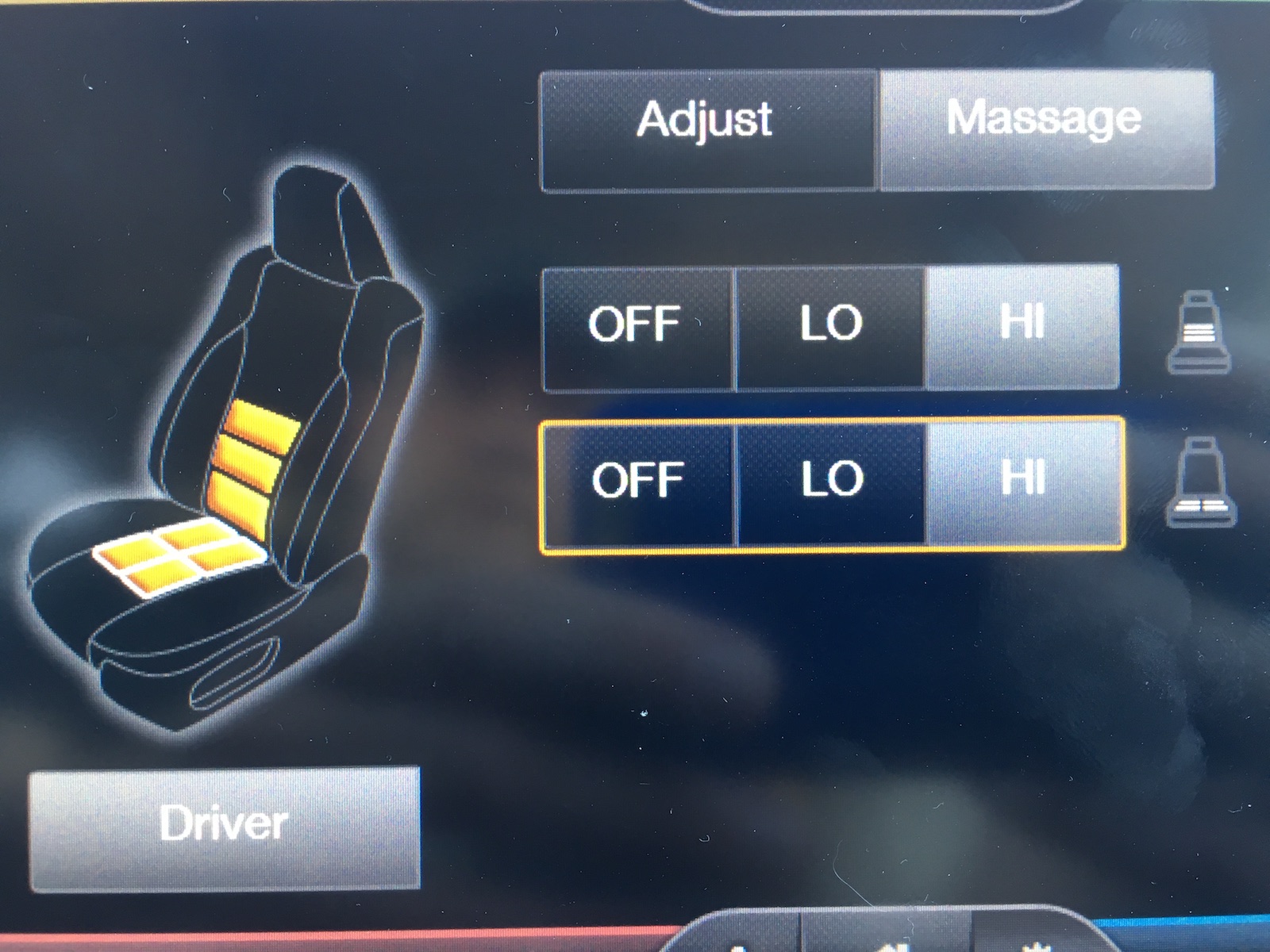 Then there’s this. Um, how do I explain what “this” is. Right. So, there are standard front seat heaters and cooling. That’s not so unusual these days. “Butt” these also have massagers? I figured they were some under-powered, underwhelming seat vibrators. Ah… no. Both seats employ, at the touch of a button, very nice back massagers built into the seat backs. “Butt” then there are the seat bottoms. It is literally like having your own personal masseuse kneading your buttcheekies (as my daughter calls them) while you drive. I don’t know the mechanics behind this, but I know it’s fairly serious. While it’s kneading away, I can hear a small air compressor pump filling up an air tank. I don’t know where Ford hid it, but I do know that I have an air masseuse on board! And it’s available on command! It is incredible.