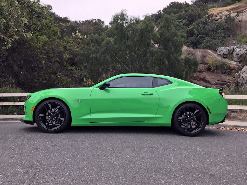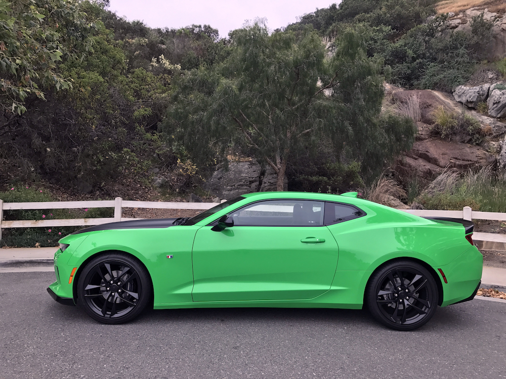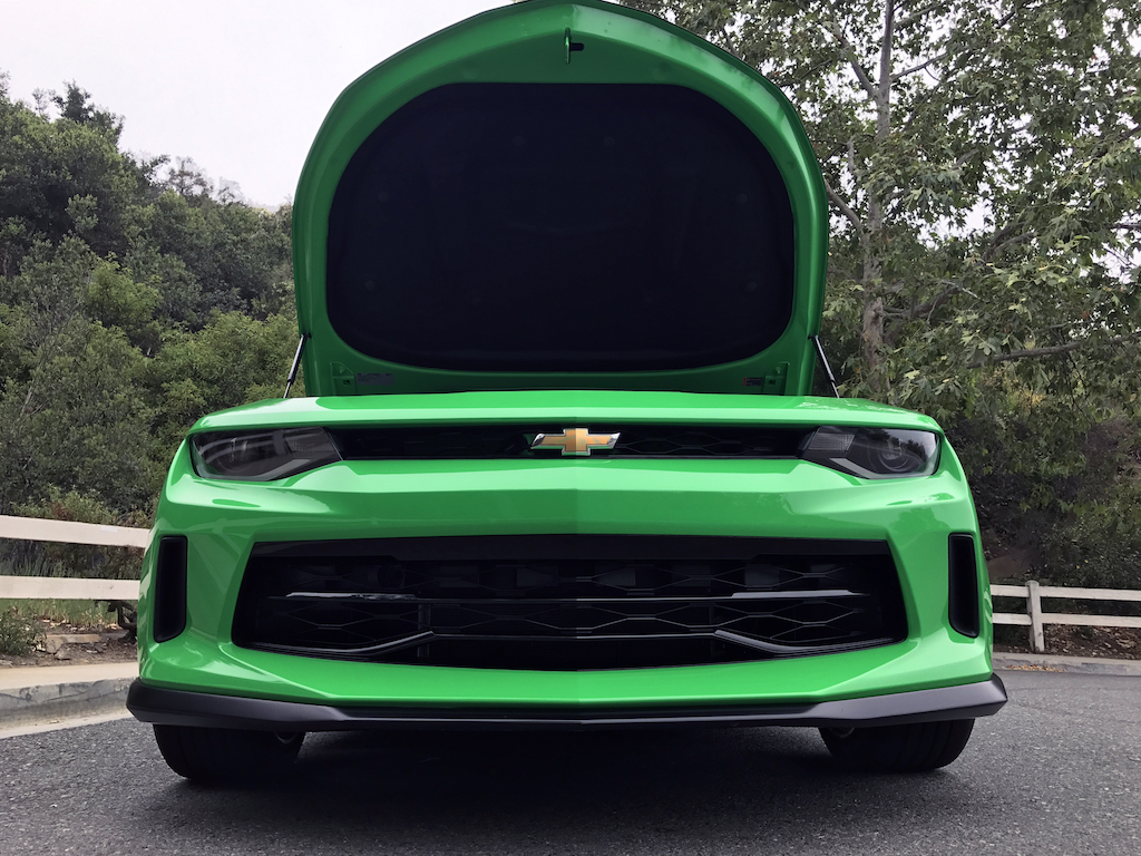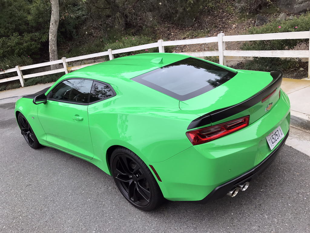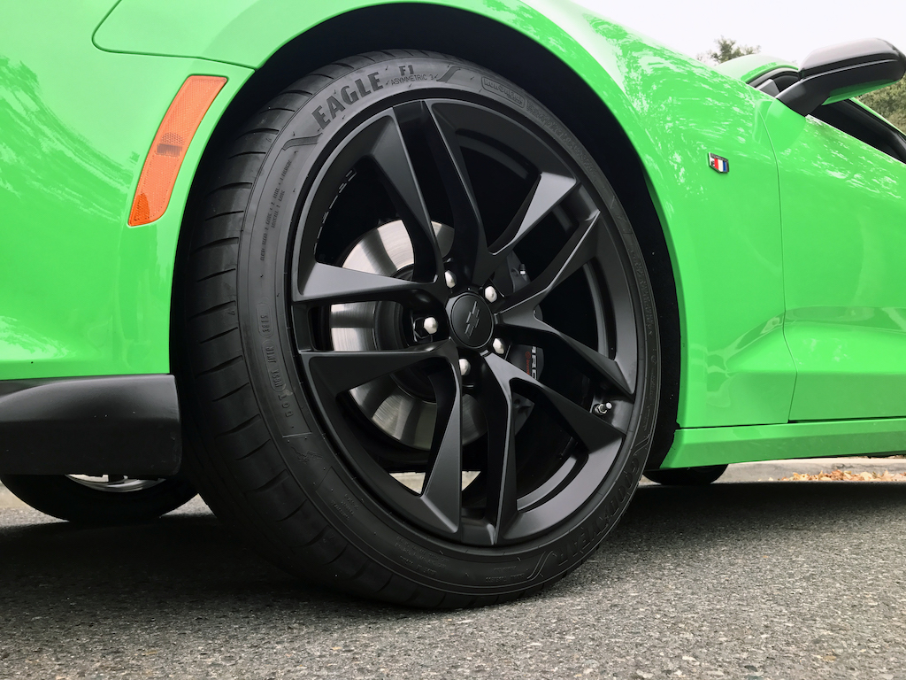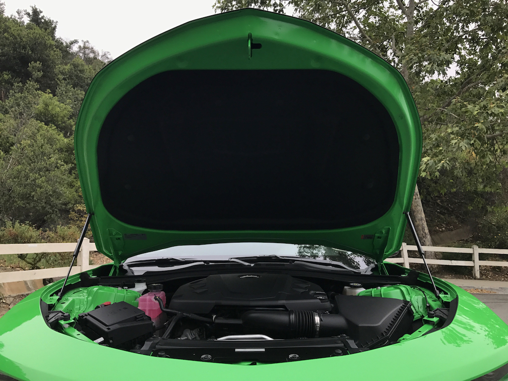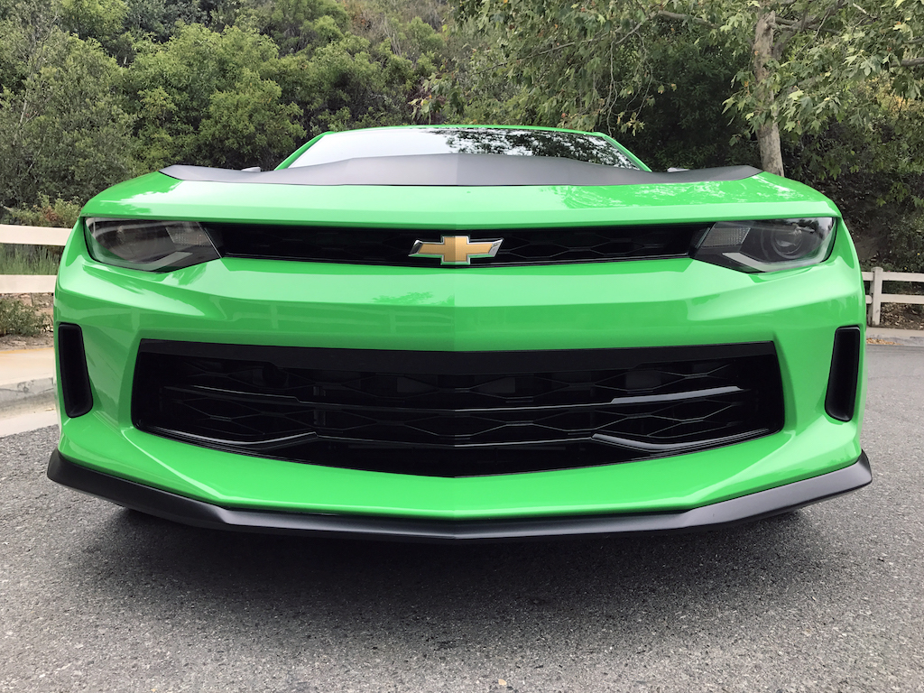 Now. With all of that out of the way, let’s get to this Camaro’s exterior. Krypton Green ($395 option) is one of those colors you either love or hate. Frankly, I’m not sure how you could hate it, because in person it’s staggeringly good looking. Trust me when I say photos will never begin to do it justice. Combined with black 20″ aluminum wheels, and satin black blade spoiler, front splitter and hood wrap, this isn’t just another muscle car. It’s a statement. For some, it could be a little loud. Personally, I think it beautifully matches the character of the car and makes the crisp lines that much more potent. You could drive a very, very long way and not come across a muscle car this visually arresting.