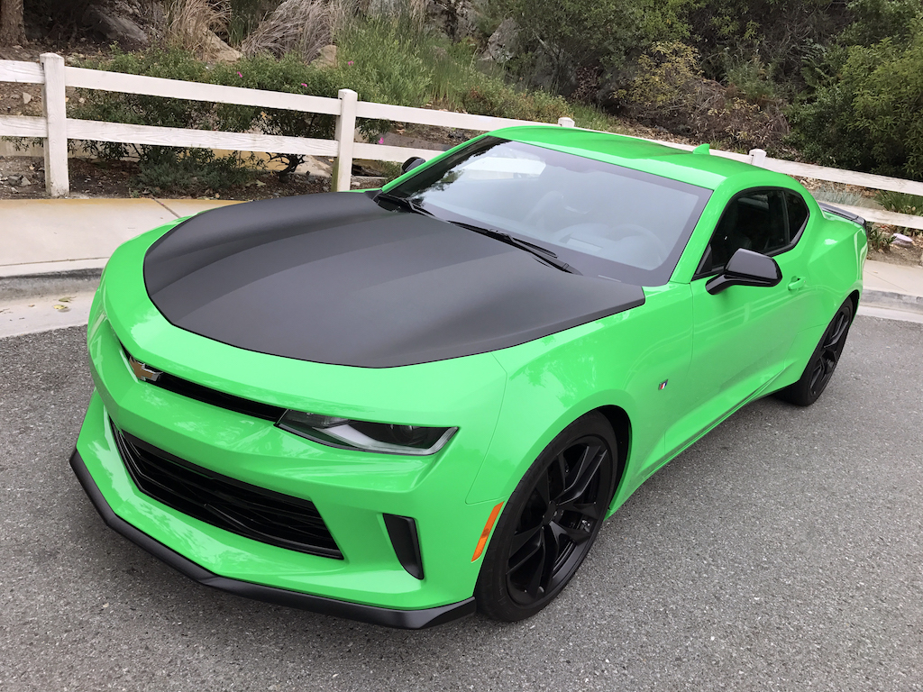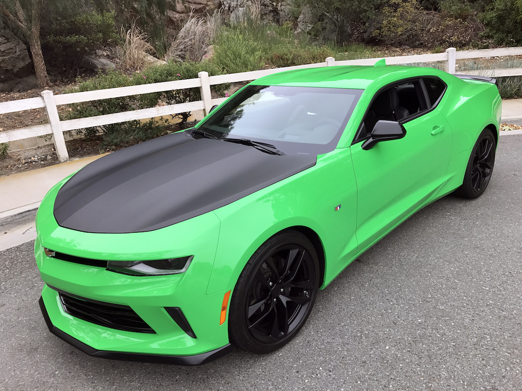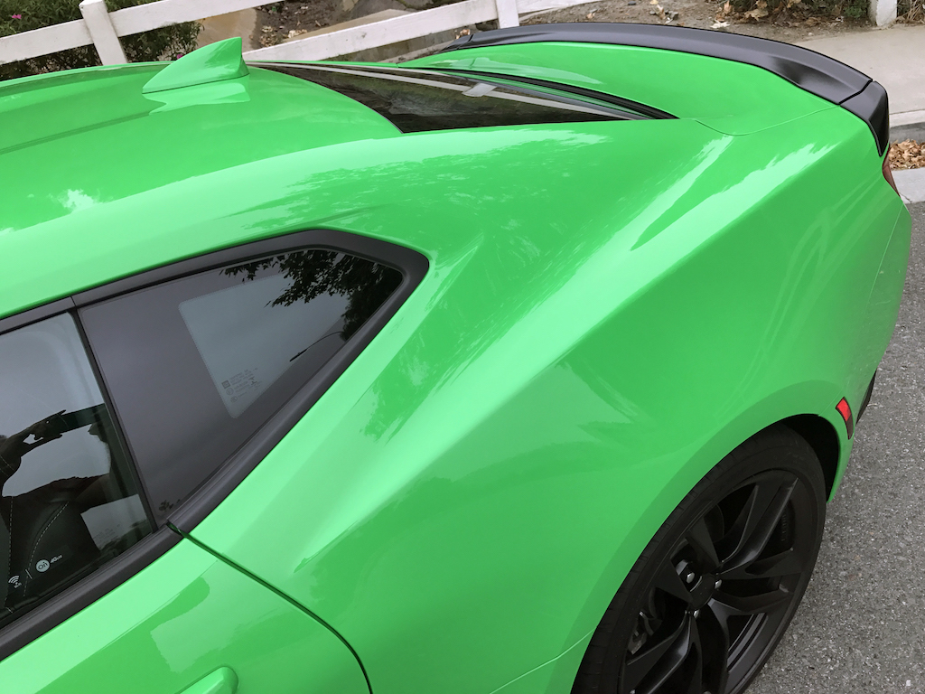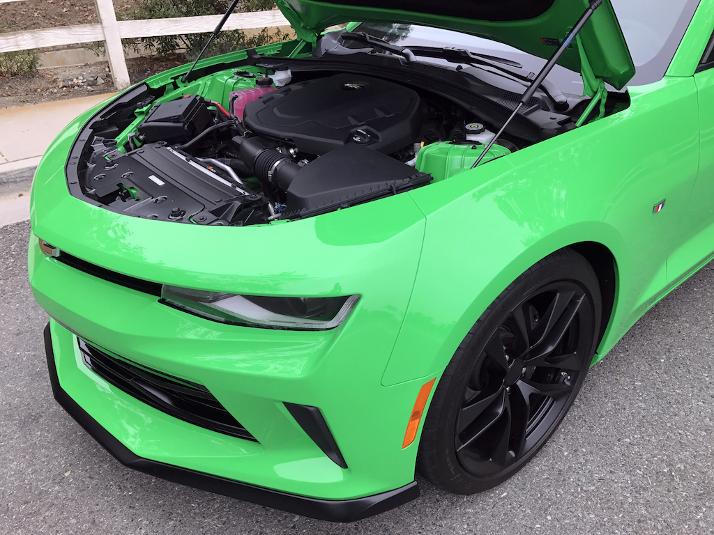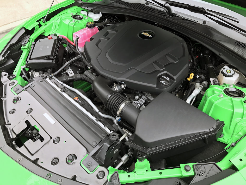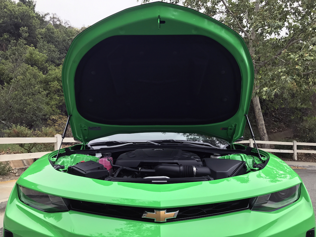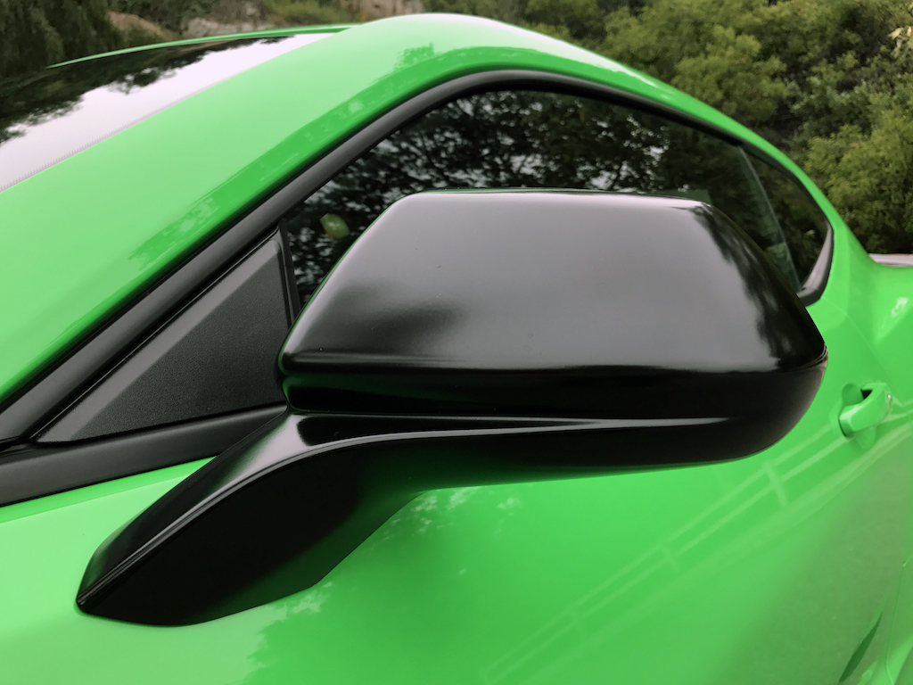 Now. With all of that out of the way, let’s get to this Camaro’s exterior. Krypton Green ($395 option) is one of those colors you either love or hate. Frankly, I’m not sure how you could hate it, because in person it’s staggeringly good looking. Trust me when I say photos will never begin to do it justice. Combined with black 20″ aluminum wheels, and satin black blade spoiler, front splitter and hood wrap, this isn’t just another muscle car. It’s a statement. For some, it could be a little loud. Personally, I think it beautifully matches the character of the car and makes the crisp lines that much more potent. You could drive a very, very long way and not come across a muscle car this visually arresting.