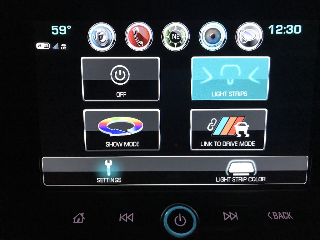 Other standout interior design elements include sleek HVAC design: simply turn the ring around the air vents to change temperature. Very nice touch. Plus, all air-con/heating buttons are lined up in one row below the touchscreen. I’m a huge fan of clean interior design, and this is a great example of getting it right. At night, get ready for a truly impressive light show. There are LED lights everywhere, controllable through the touchscreen, and virtually any color is up for grabs. It’s a feature Chevy probably could have skipped, but I’m very glad they didn’t.
