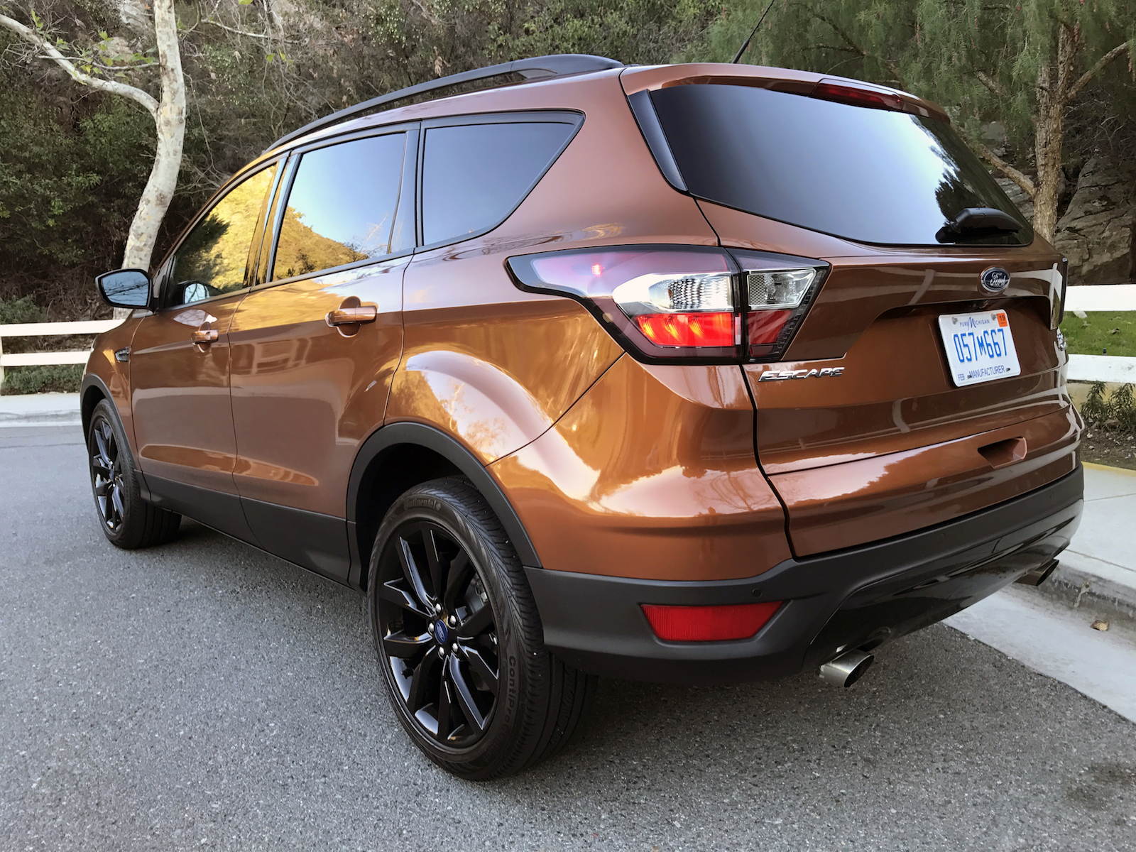 Right off the bat, the latest generation of the Escape isn’t a bad looker. No, it doesn’t have the same weak-at-the-knees effect as some of Ford’s more stunning models (looking at you, Fusion and Mustang). But, with the optional SE Sport Appearance Package (including black wheels), sharp headlight/taillight design and well-placed accents, I prefer the look to a number of other compact SUVs on the market. I’m not quite as wild about the ‘Canyon Ridge Metallic’ color, but there are of course other alternatives.
