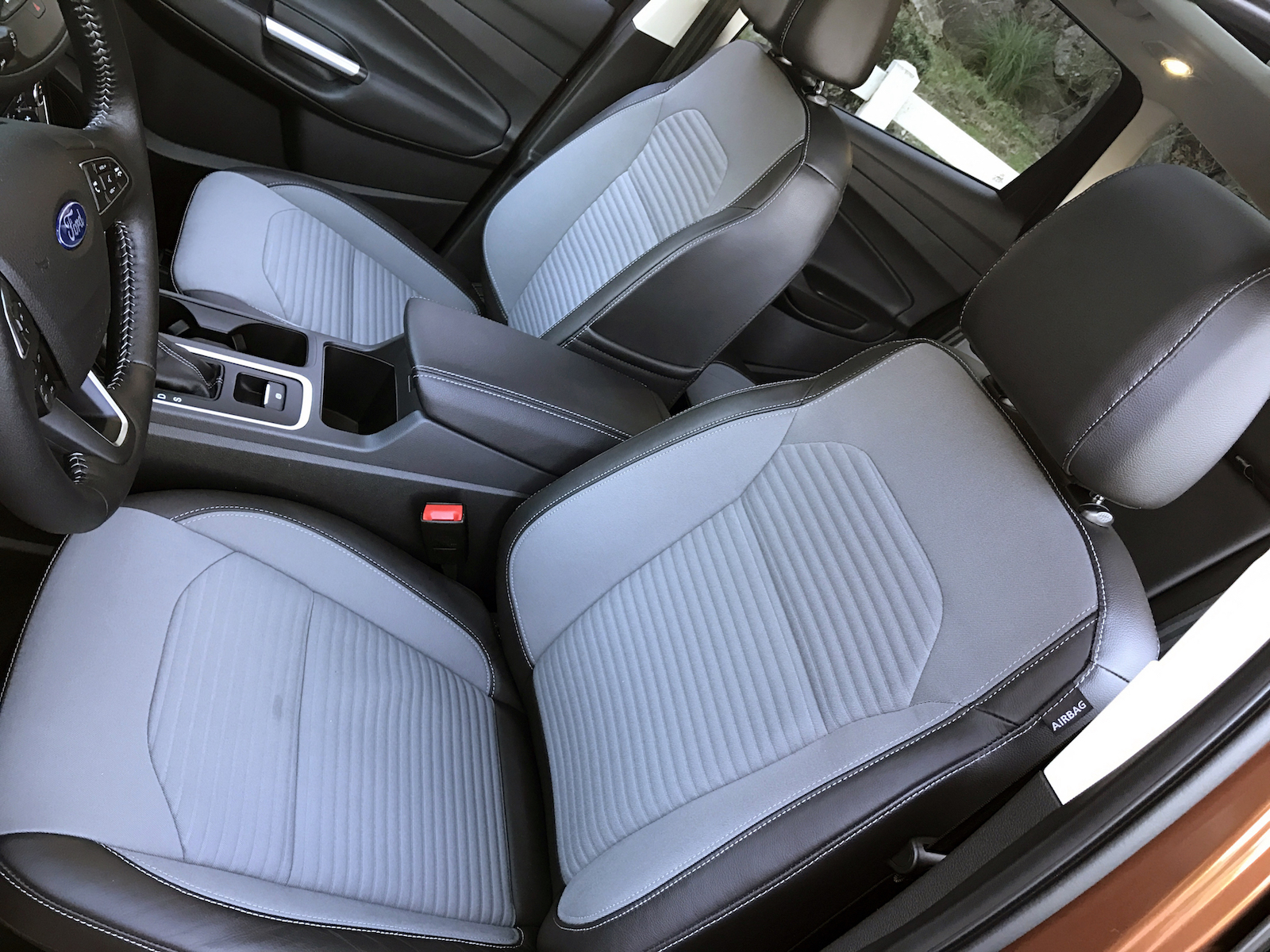 In terms of overall interior design, it’s typical modern Ford: very nicely laid out, and everything is where you’d logically expect it to be. One item of note: I was pleasantly surprised by the use of seating materials. Leather is used on the outside and headrests, while a ribbed cloth material is fitted elsewhere. It’s an interesting combination and I found it to be particularly comfortable. Nice touch. If you hate start/stop (yours truly included), you probably won’t fall in love with the fact that it’s standard on the SE. If you want to avoid it, there’s always the lower-level “S” model.