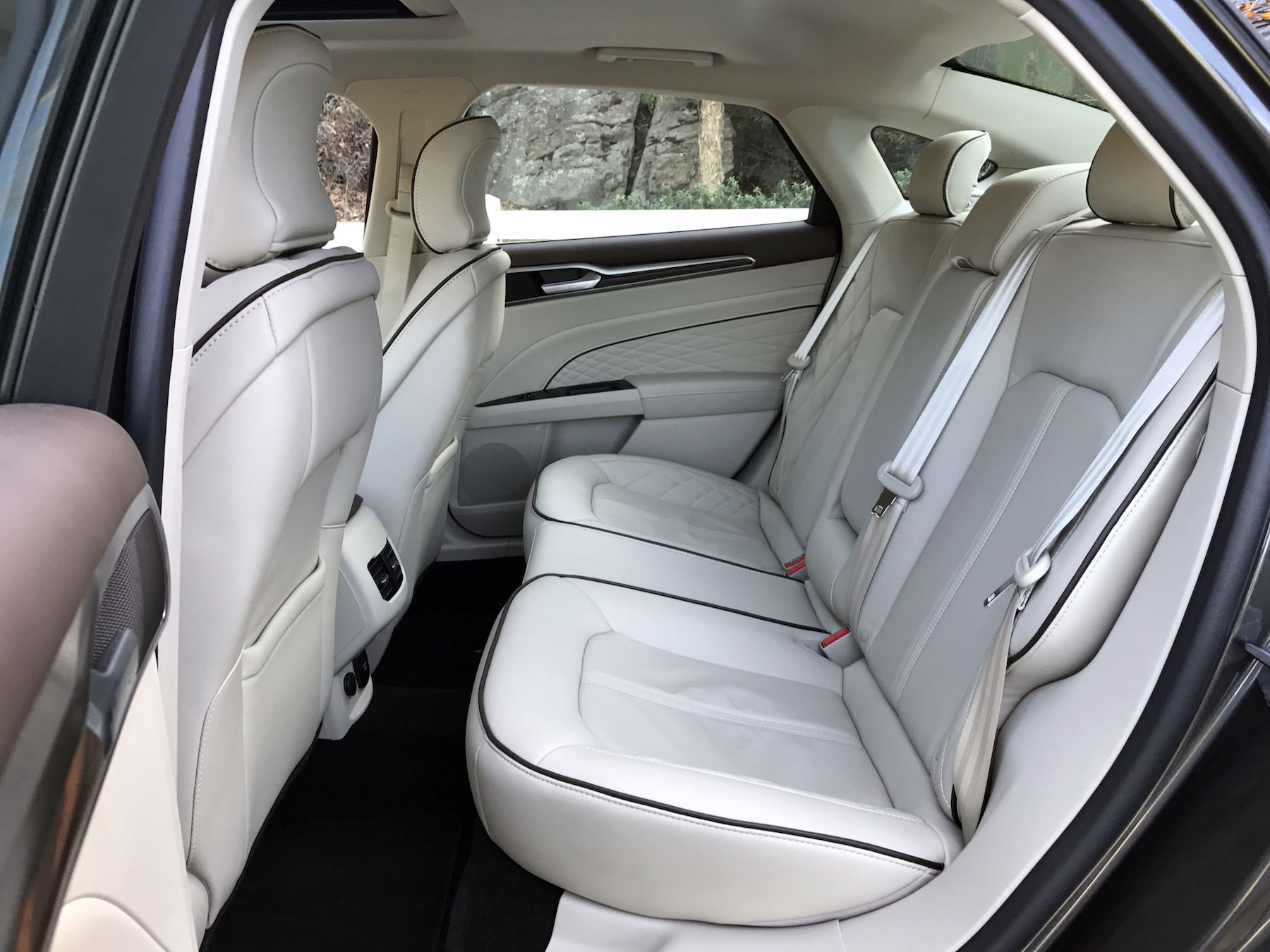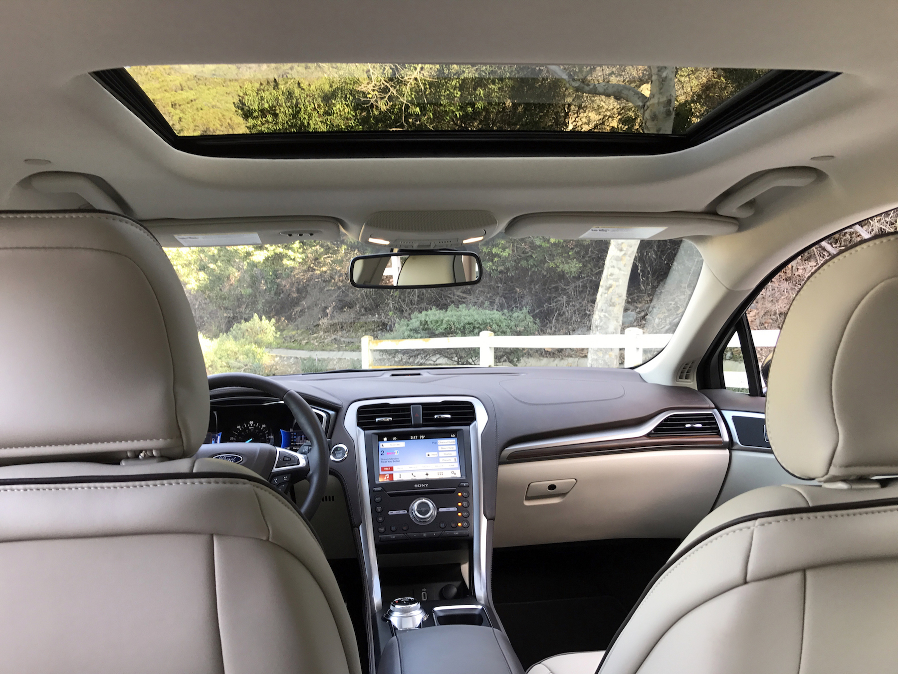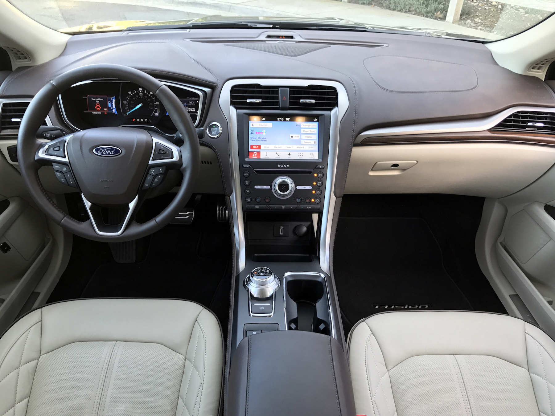 Not only was this the first Ford Fusion Hybrid I’ve gotten behind the wheel of, it’s the first hybrid in general I’ve ever driven. Immediate impression: driving without any engine noise or activity is a surreal experience. Until you really get on it, the naturally-aspirated four cylinder remains dormant. When you do put your foot down hard, the resulting acceleration isn’t exactly what you’d expect. The engine doesn’t have a turbo and wow is that apparent. Pretty decent guess that if you’re buying a hybrid big power isn’t a priority. But still, worth noting.