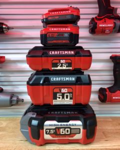In this episode I show what I believed to be all the lithium ion currently available batteries from CRAFTSMAN: the 2AH and 4AH batteries for the V20 platform, plus the 2.5AH and 7.5AH batteries of the V60 platform.