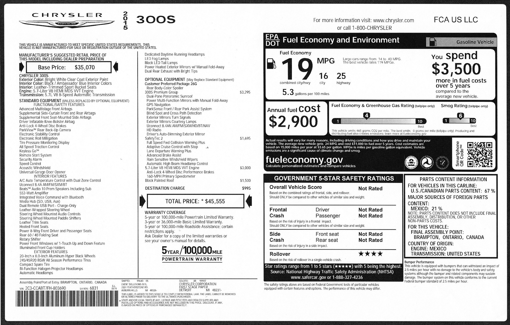 One of the bigger changes is the model lineup itself. There are now three trim levels; 300, 300S and 300C. The 300 Premium is the base car (think rental car fleet), the 300S is the sportiest of the trio and 300C is the most luxurious. The prices reflect that order, with base coming in at $31,695, the S slightly higher at $35,070 and range topping C beginning at $38,070. New for 2015 is the 300C Platinum trim at $42,395. All can be had in either RWD or AWD, with the latter running about a $2,000 premium.