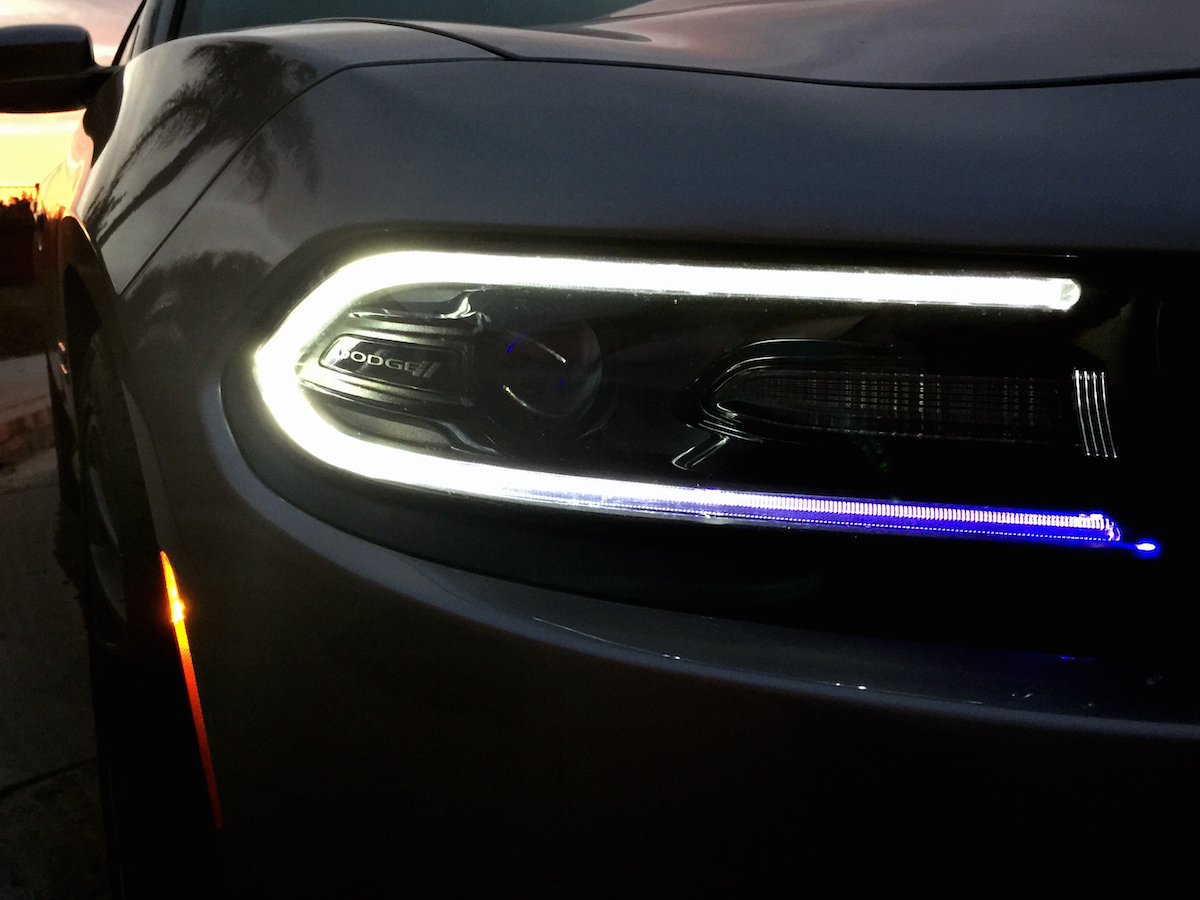 The 2015 Charger features an all new front end that I (and everyone else who saw my ride of the week) absolutely loved. It’s all thanks to the redesigned LED DRL’s (Daytime Running Lamps) and bi-function HID projector headlamps. They look so cool during the day, but at night they make a statement. Once you see them, you’ll know it’s a Charger in your rearview mirror for the rest of your life. They are unique and now iconic. The front end looks so much better (IMHO) than previous model years. Major props to the Dodge design team for coming up with something so aggressive and cool looking, just like the rear end.