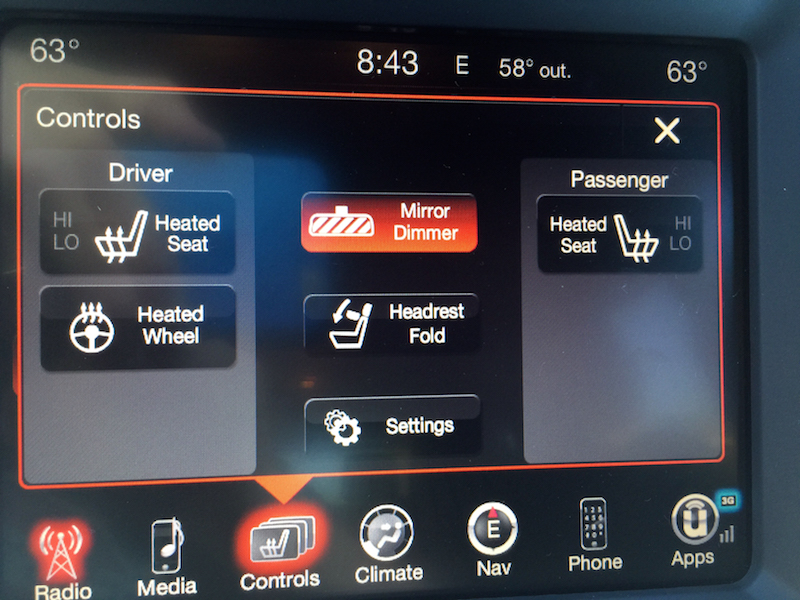 2015_dodge_durango_v6_headrests_up_down copyOne of my favorite features is the ability to control the 3rdrow power headrests from the 8.4” touchscreen display. Just tap a button, and they instantly flip down and out of the way from obstructing  your view.