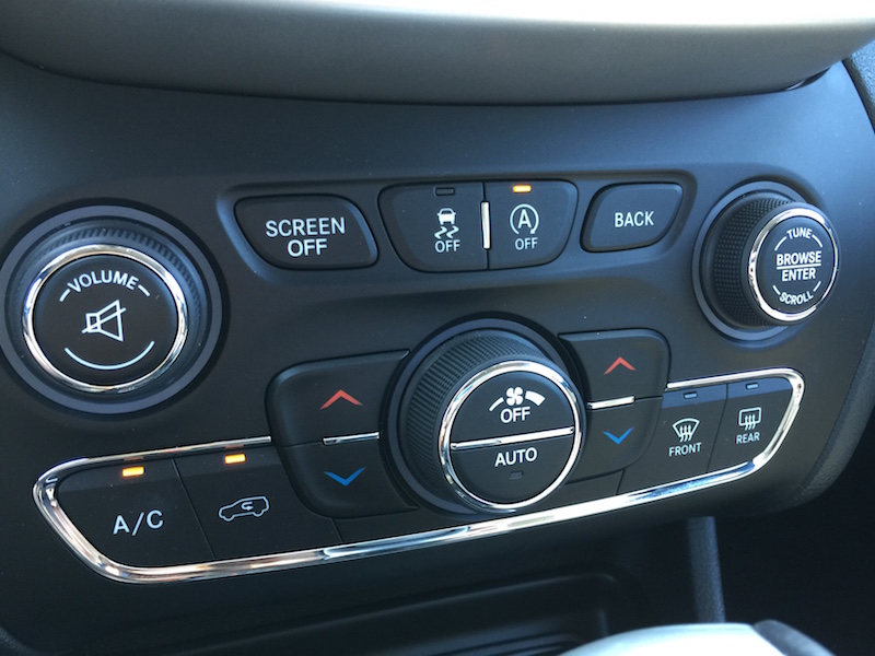 Speaking of annoying, there is one tech feature here I’m not particularly wild about. As with a growing number of new vehicles, the 2015 Cherokee Limited offers an optional engine auto start/stop feature. As the name implies, whenever you come to a stop for more than a few seconds, the engine will automatically shut down. Tap the gas and it will nearly instantaneously restart, sending you on your way with minimal delay. My issues with it are 1. price ($1,750) and 2. actual convenience. Nearly two-grand is a pretty big ask, although Jeep does say start/stop increases fuel efficiency by around 3%, eventually paying for itself.