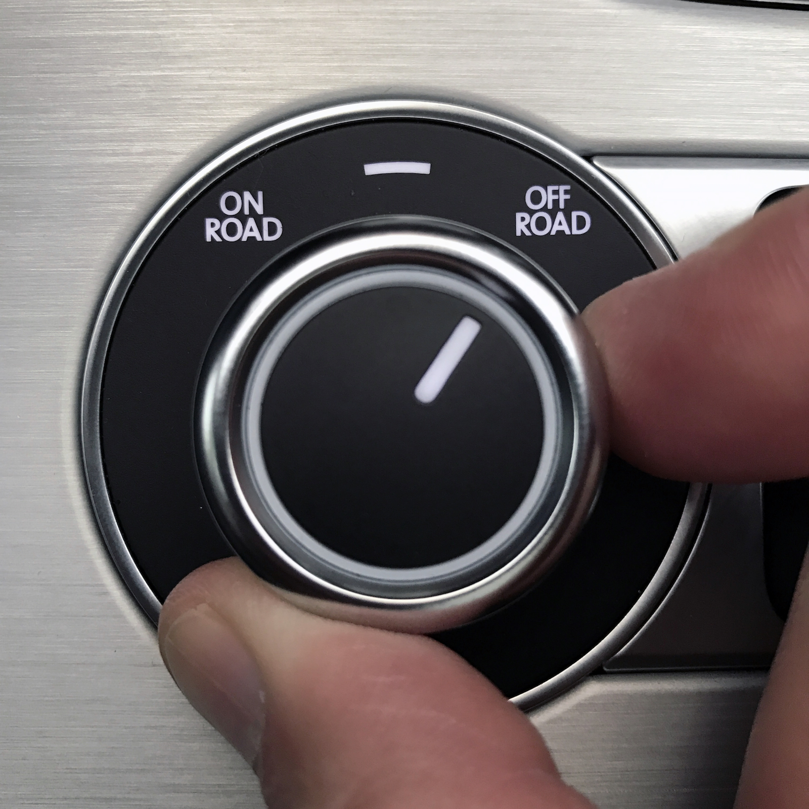 Another nice interior feature: the on-road/off-road knob. Coming from someone who likes to head off-road, it’s always a delight to come across an SUV that’s actually designed to take the path less traveled. Via this knob, the driver has access to a low-range set of gear ratios. That includes ratios extending to 2.66:1 for heavy-duty off-roading and maximum power delivery at low speeds. Case in point: it can handle grades of up to 100 percent (45 degrees). It can also ford through 22.8″ of water, or two inches higher than a ’14 Jeep Grand Cherokee. No marketing ploy at work here. Off-road mode means off-road mode.