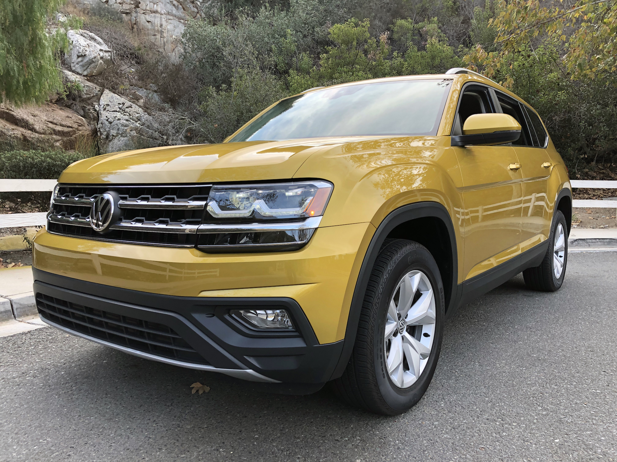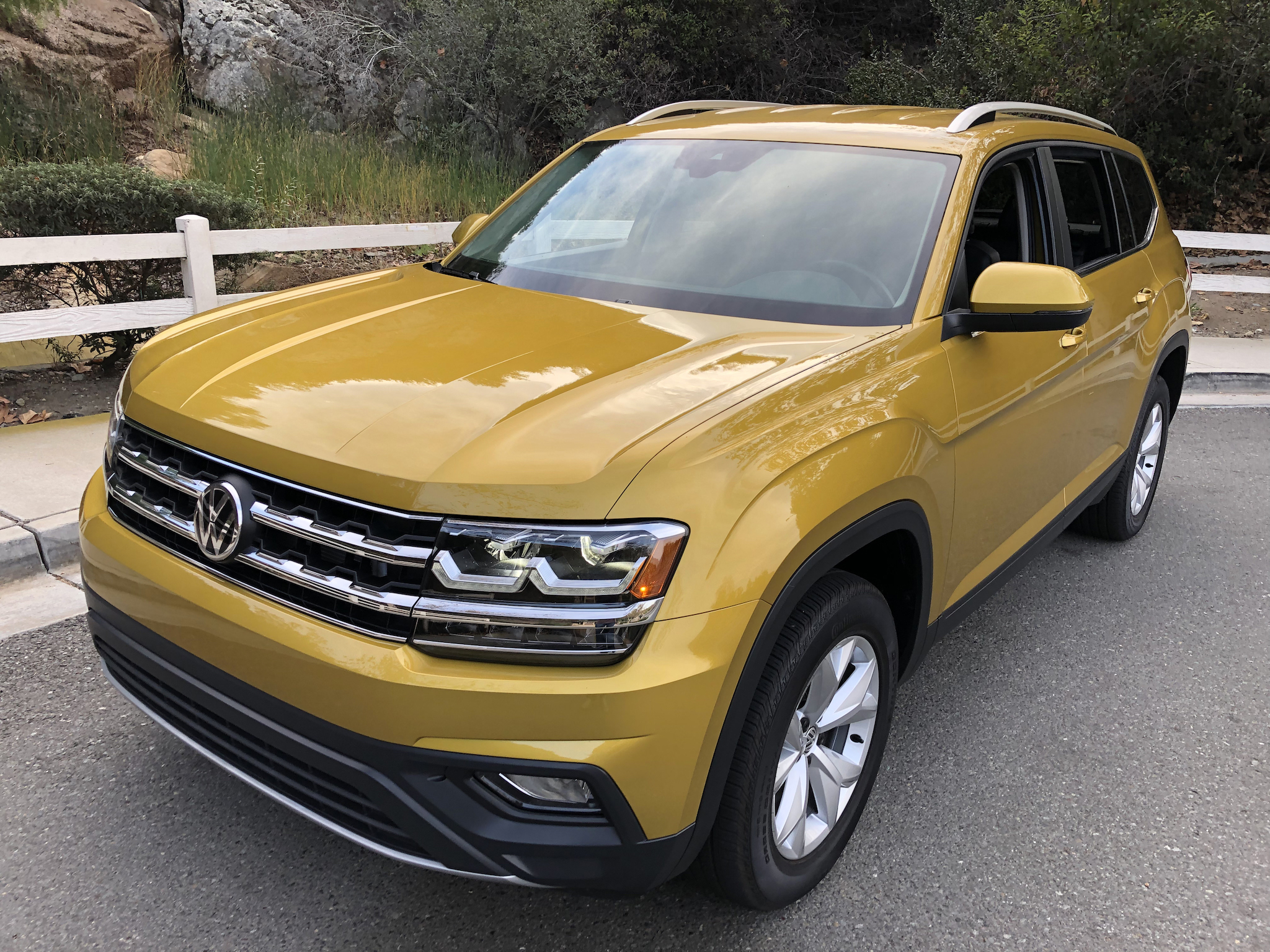 As tested, my 2018 Atlas 2.0T’s MSRP is $34,515–no fancy options added. The interior is a black “V-Tex leatherette” that looks like leather to me. The color is called Kurkuma Yellow Metallic, resembling the color of turmeric spice. Most mustard yellow to me. I like it, but it wouldn’t be my first choice of paint color. If you’re looking for an excellent choice for a new SUV or crossover for your family, you aren’t going to go wrong with the 2018 VW Atlas.
