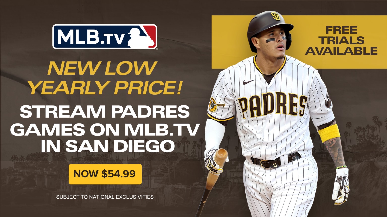 Stream: FUBO is the only streaming service, outside of MLB’s own “Padres.TV” (subject to national exclusivities) which is $19.99/month or $99.99/year.