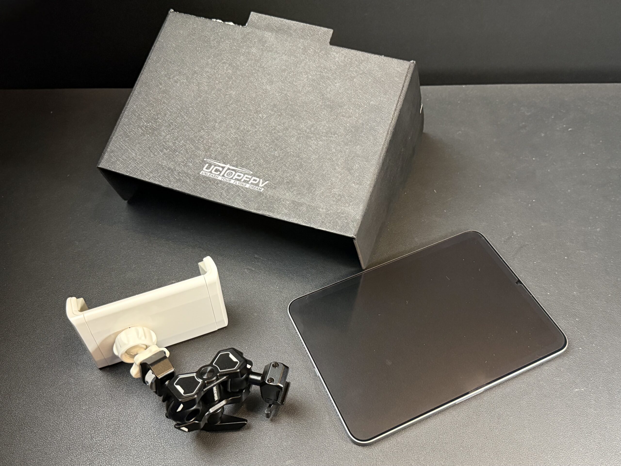 But after more digging I found a ridiculously cheap $12 product on Amazon that had a dismal 2.5 star rating (albeit with only 11 reviews at this time). It’s the SummitLink 7-inch sun shade for iPad mini, and its intended use is with a remote controller for the DJI Phantom and other DJI drones. I didn’t really care about the mount (we’ll get to this later). All I really cared about was the shade–I’ll MacGyver the mounting part if I have to.