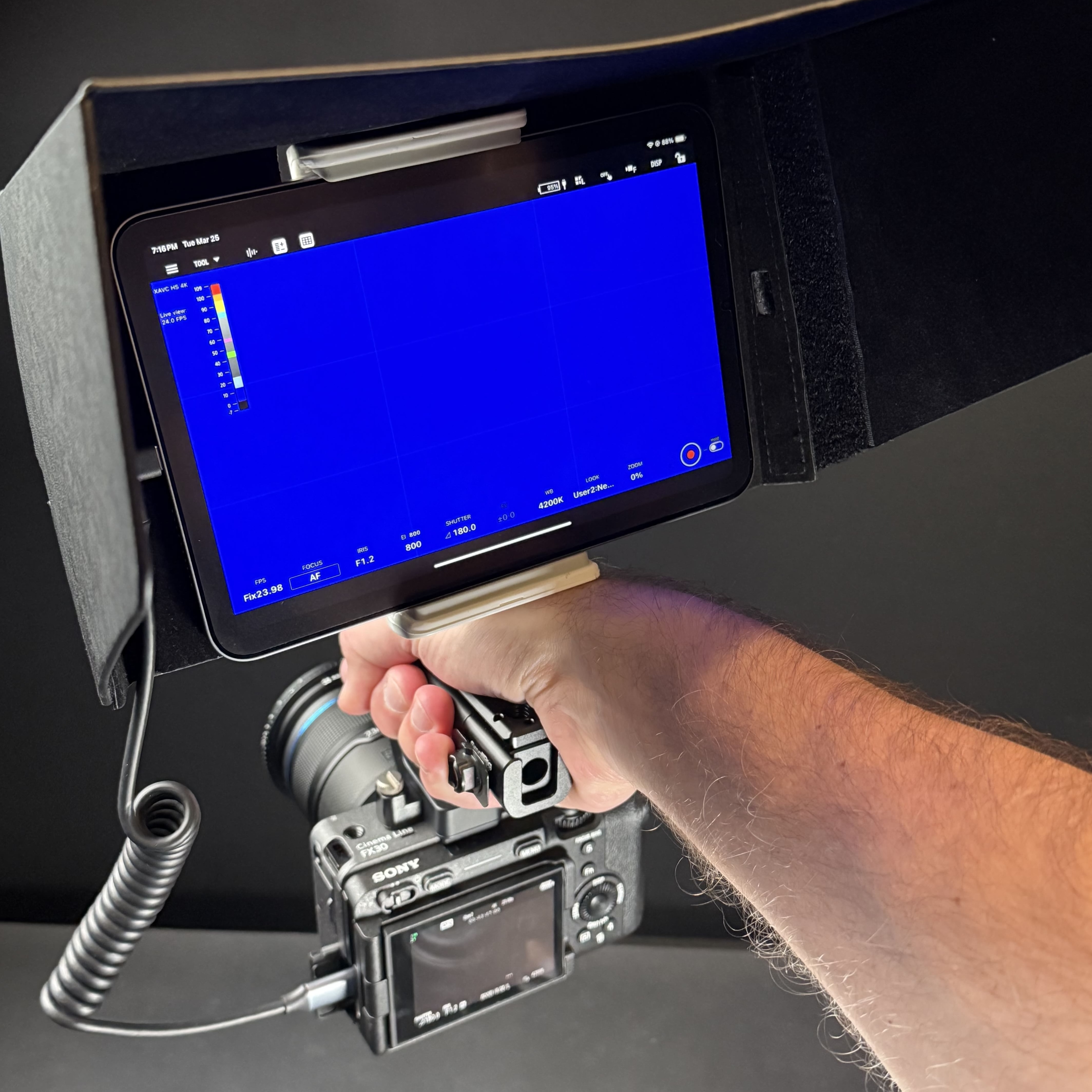 I thought I was all set with the ultimate camera monitor and control setup for my Sony FX30. But then I took it outside. While it can be viewed outside, at 500 nits brightness it is at least half the brightness of the other traditional camera monitors I tested (1,000 nits). I quickly realized that I wasn’t quite done yet with my rig. I needed a sun shade for those situations that warranted it.